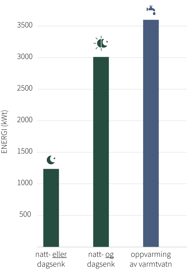 Me treng ikkje ha same temperaturen heile tida og i heile huset. Til dømes treng du ikkje ha same temperatur i huset om natta når du søv, og på dagtid når du er på jobb, som du vil ha når du er heime og brukar opphaldsromma.