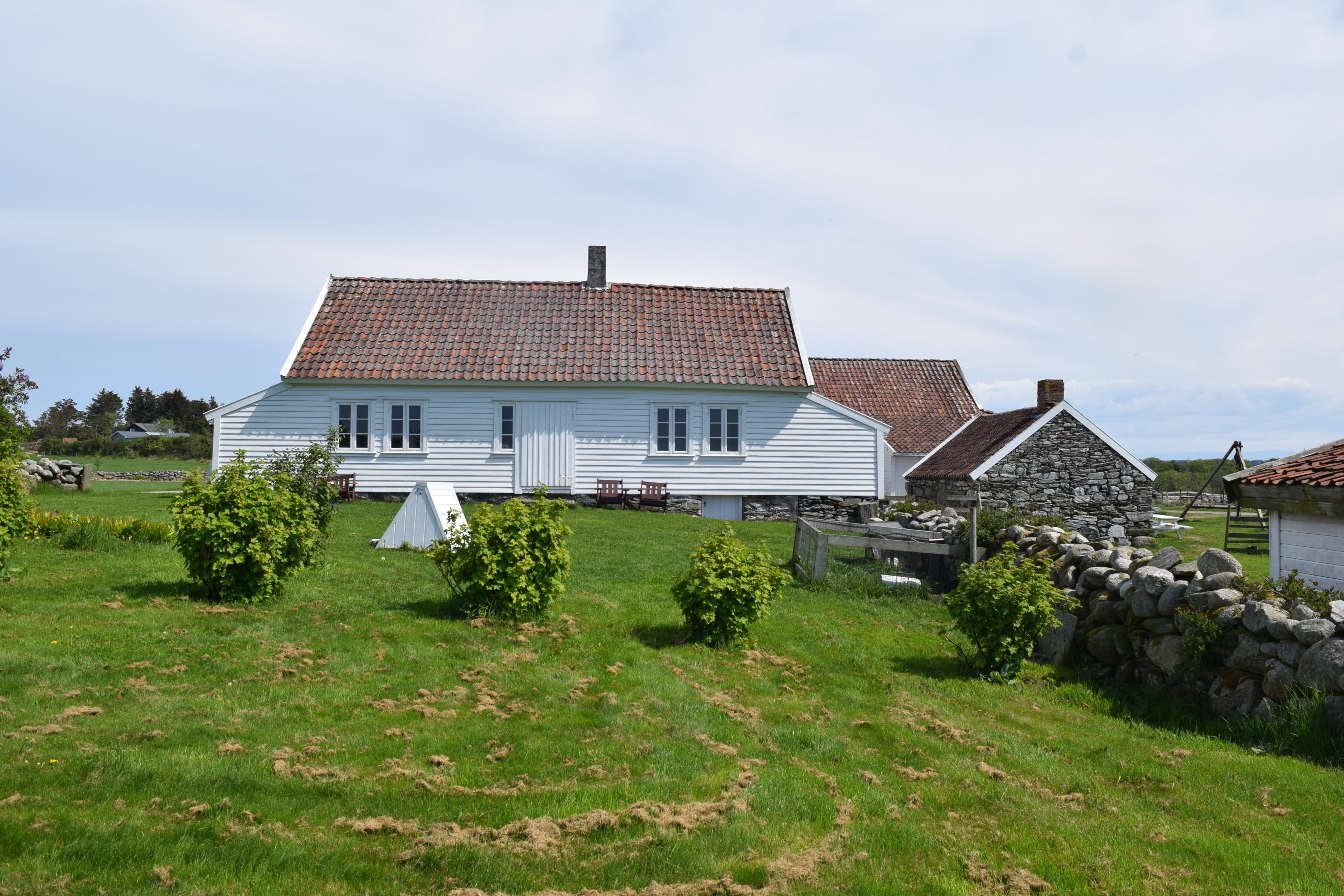 Bygningane på Vistnes i Randaberg kommune er døme på korleis den lokale byggjeskikken heng saman med materialtilgong og klimatilhøve på staden. Plasseringa av bygningane gjer at dei dannar eit lunt indre gardstun som livar for vinden. Endeveggane på husa har skutar som tek av for vinden. Ofte var skutane mura med lokal stein, slik som på enden av løa. Stovehuset har liggjande vestlandspanel. Langs den vêrharde jærkysten var dette mest praktisk – ein kan lett skifta dei nedste borda som er mest utsett for råte.